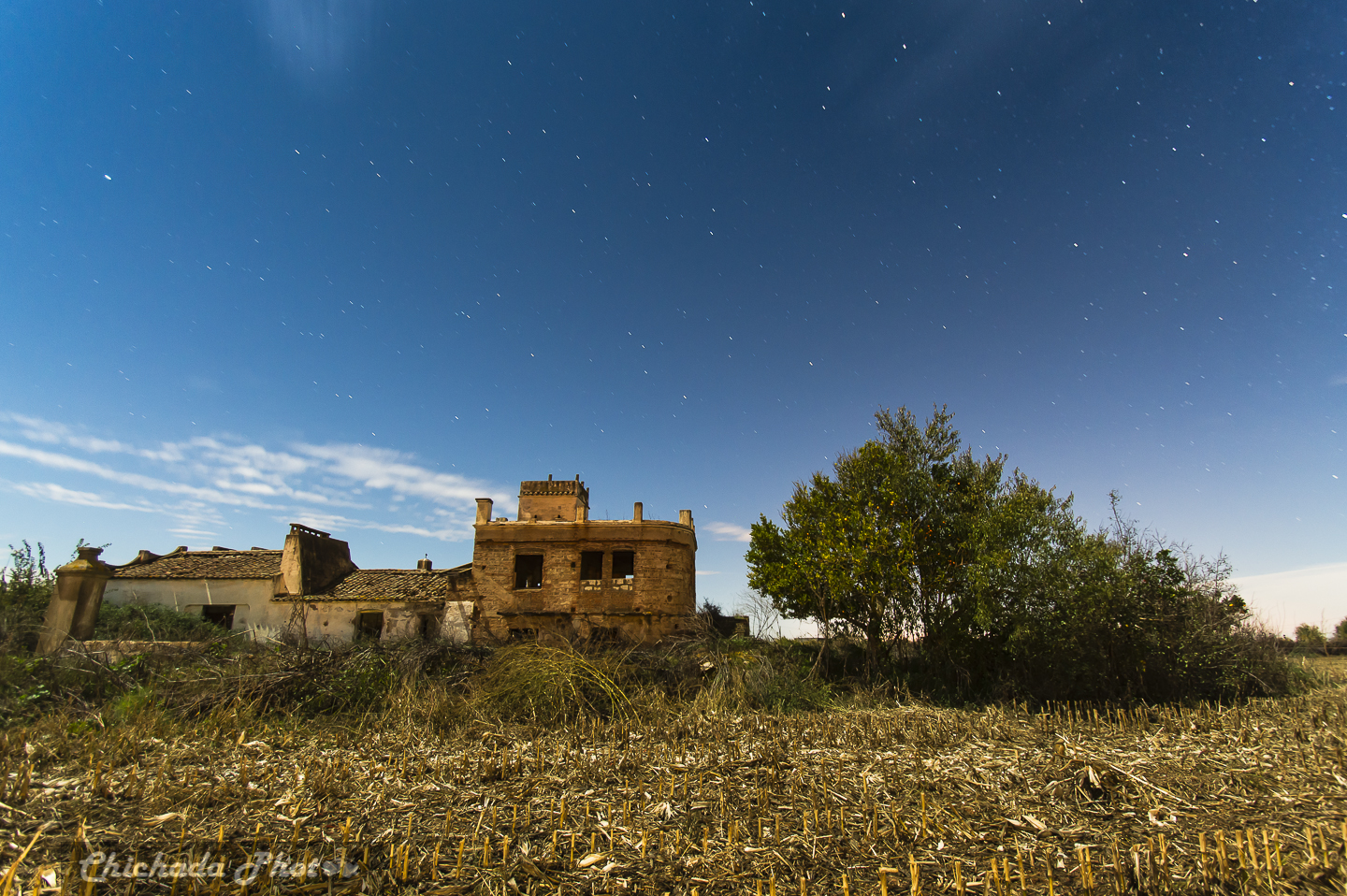 Tras varios días intentando poder hacer una salida con compañeros de locuras como Juanjo Peñafiel o Cesar Olivares, por motivos laborales no se pudo llevar a cabo, una lástima pero seguro que en mi siguiente viaje se hará. Los días iban agotándose y no me quería ir sin estar en alguna localización más. Pregunté a los lugareños por alguna localización cercana y me hablaron de una casa abandonada muy cerca del pueblo. Para no llevarme una sorpresa miré como estaba el acceso por el día, vi que había que saltar un canal de regadío y caminar por el campo 5 minutos. ¡Perfecto!, esta noche lo tendría chupado.